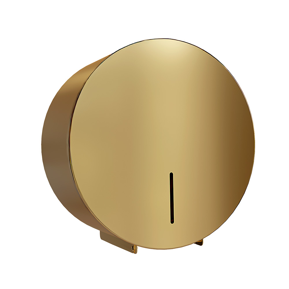 Mattapintainen Jumbo-mallinen WC-paperiannostelija, jonka pinta on käsitelty rustiikkisen kullan väriseksi. Harjattu kulta luo tilalle arvokasta ja klassista ulkonäköä. Suuren kapasiteetin Jumbo-paperiannostelija tarjoaa pitkän täyttövälin sekä mahdollisuuden käyttää tuotetta suurella käyttöasteella olevissa WC-tiloissa. Annostelijassa on yläpuolella piilolukitus, joka aukeaa siihen tarkoitetulla avaimella. Annostelijaan sopii esimerkiksi Tork Jumbo ja Katrin Gigant WC-paperirullat.