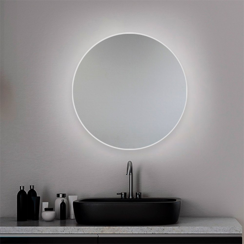 Pyöreä valkokehyksinen taustavalaistu peili Kajo. Takana tehokas 4000K lednauha, Osramin laadukkaalla ja pitkäikäisellä teknologialla. Led nauha vaihdettavissa. IP44, 1706lm, 13.3W ja peili kiinnitetään seinään turvallisen kannatinlistan avulla. Lukitushelalla peili saadaan asennettua kiinteästi seinään, jolloin peiliä ei saa nostettua seinältä ilman erilistä työkalua. Valmistettu Suomessa. Lisävarusteet: himmennyskytkin, höyrynpoisto, turvakalvo.