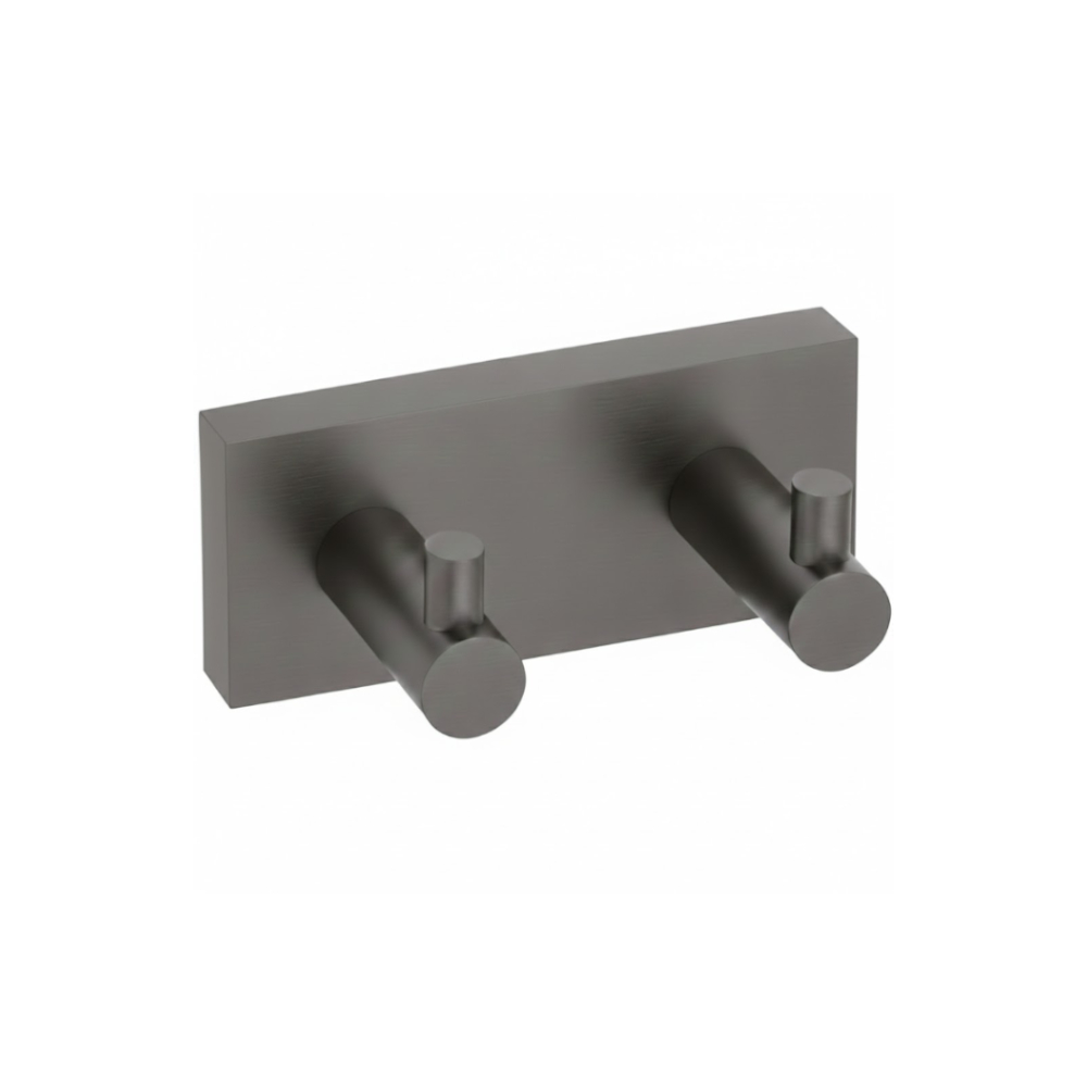 Mattapintainen kaksoiskoukku, jonka pinta on käsitelty metallinhohtoiseksi tummanharmaaksi. Grafiitinharmaa väri on miellyttävä ja sulautuu osaksi sisustusta. Kaksoiskoukku on valmistettu kulutusta kestävästä PVD-pinnoitetusta messingistä ja kiinnitetään seinälle peitelaipan alla olevilla ruuveilla. Pakkaukseen sisältyy kiinnitystarvikkeet.