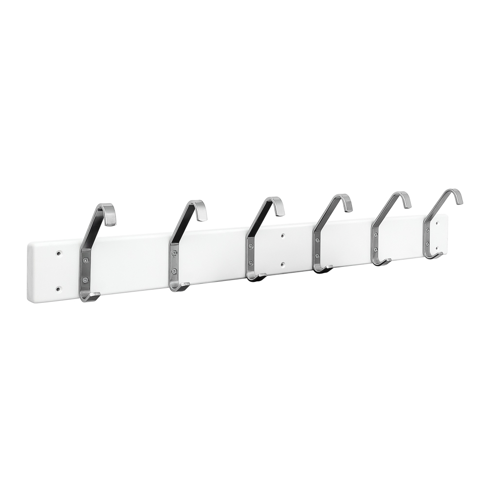 Naulakkolautaa käytetään perinteisesti koulukoukustona, mutta se on erinomainen valinta myös pukutiloihin tai sisäänkäynnin yhteyteen tilaa säästävänä naulakkoratkaisuna. Tämä 1000 mm pitkä lauta on varustettu kuudella koukulla. Laadukkaasta liimapuulevystä valmistettu ja valkoiseksi maalattu koivulauta on erittäin tukeva eikä ole altis vääntymiselle. Laudan mitat 28×100 mm. Laudassa on esiporatut kiinnitysreiät, jotka helpottavat asennusta, ja sen reunat on huolellisesti pyöristetty. Laudassa on vakiona koulukoukku 1020, kromi.