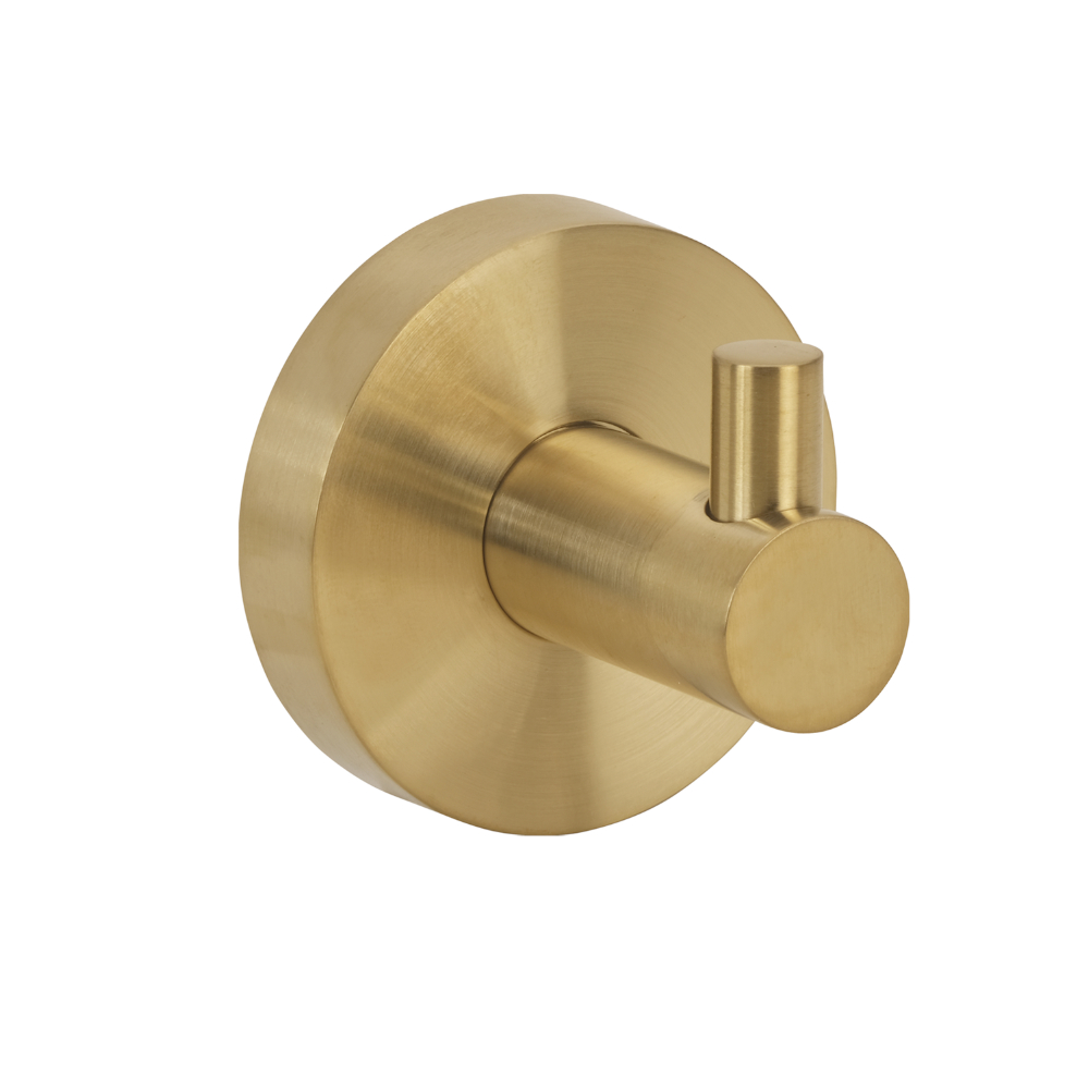 Mattapintainen yksittäinen pyyhekoukku, jonka pinta on käsitelty rustiikkisen kullan väriseksi. Harjattu kulta luo tilalle arvokasta ja klassista ulkonäköä. Pyyhekoukku on valmistettu kulutusta kestävästä PVD-pinnoitetusta messingistä ja kiinnitetään seinälle peitelaipan alla olevilla ruuveilla. Pakkaukseen sisältyy kiinnitystarvikkeet.