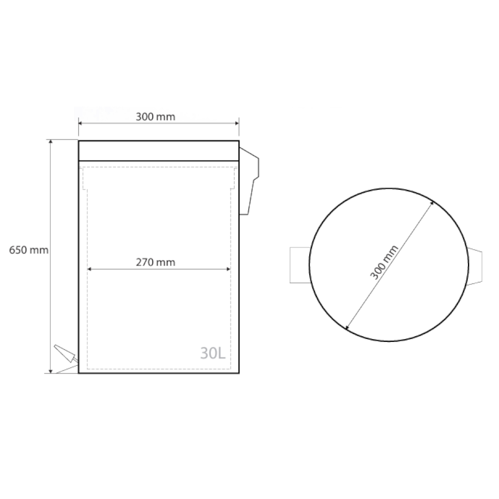 30 l ruostumattomasta teräksestä valmistettu poljinroska-astia.