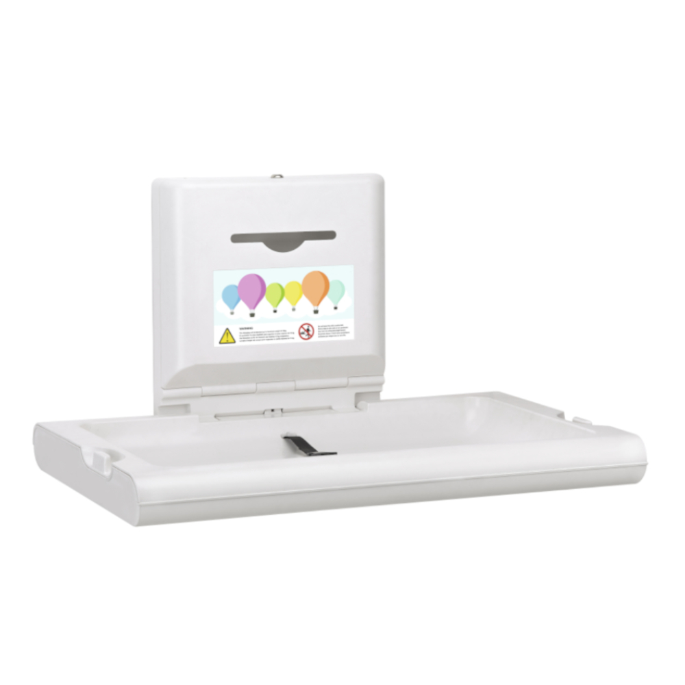 Seinään kiinnitettävä hoitopöytä kestää suurta kulutusta ja 50 kg kuormitusta. Tuote on valmistettu kestävästä antimikrobisesta polypropeeniseoksesta. Tämä hoitopöytä on ihanteellinen ratkaisu julkisiin tiloihin, kuten ostoskeskuksiin, lentokentille, julkisiin rakennuksiin ja päiväkoteihin. Mole mmissa reunoissa on laukkukoukut, jotka pitävät henkilökohtaiset tavarat käden ulottuvilla. Hoitopöydässä on lisäksi turvavyö. Täyttää EN 12221-1 ja EN 12221-2 -standardit, jotka edellyttävät, että hoitopöydät kestävät 50 kg staattisen kuormituksen yhden tunnin ajan, mikä takaa erinomaisen turvallisuuden ja luotettavuuden. Tuotteessa on antimikrobinen pinnoite, jonka avulla hoitopöytä pysyy hygieenisempänä käytössä.