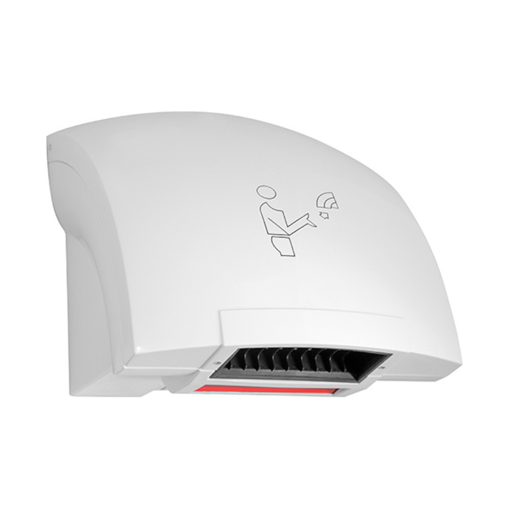 Automaattinen käsienkuivain pistorasialiitännällä. Puhallus käynnistyy automaattisesti viemällä kädet infrapunatunnistimen alle ja sammuu automaattisesti käytön jälkeen. Teho 1800 W (220-240V). Ilman lämpötila 65 astetta ja puhallusnopeus20 m/s. Äänen taso 68 dB. Kuivausaika 8-10 sekunttia. Laite voidaan kytkeä myös suoraan sähköverkkoon (vaatii luvanvaraisen sähköasennuksen).
