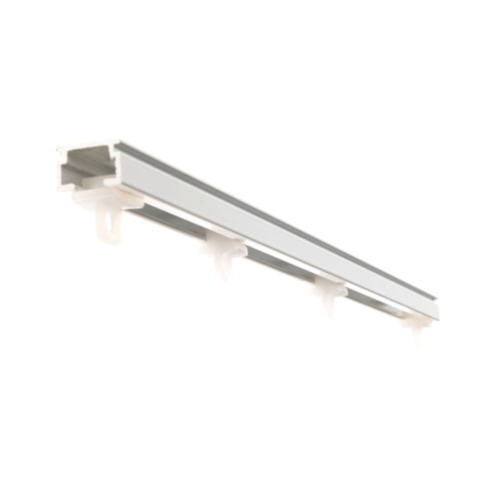 Etulipaton verhokisko, jota voidaan taivuttaa. Kiskot sis. liu´ut 10 kpl / m / ura, pysäyttimet sekä kattokannakkeet. Materiaali: puristettu alumiini, polttomaalattu. Värit: valkoinen RAL 9016. Lisävarusteena: seinäkannakkeet ja verhonipistimet.